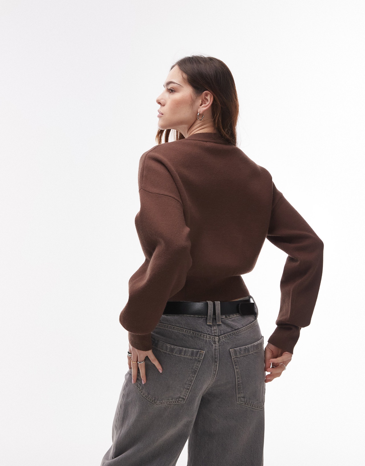 Topshop knitted compact fitted waist cardi in chocolate - BROWN