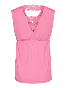 Vernieuw je garderobe met zachte en chique 2-in-1 T-shirts en tops, geschikt voor tijdens de zwangerschap en bij het geven van borstvoeding. - Type product : Top - Neck : V-Hals - Mouw : Mouwloos - Lengte/maat : Normale lengte - Details : Elegant kant detail, Voedingsfunctie met wikkeleffect, Naadlijn boven de buik - Pasvorm : Regular fit