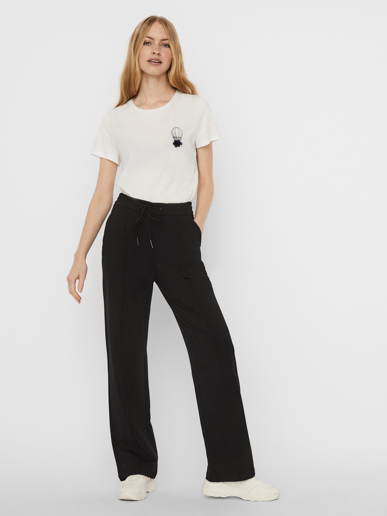 Straight fit trousers with slit pockets and drawstrings at the waist. The trousers are made from a soft viscose blend material. Style them with sneakers for everyday wear.