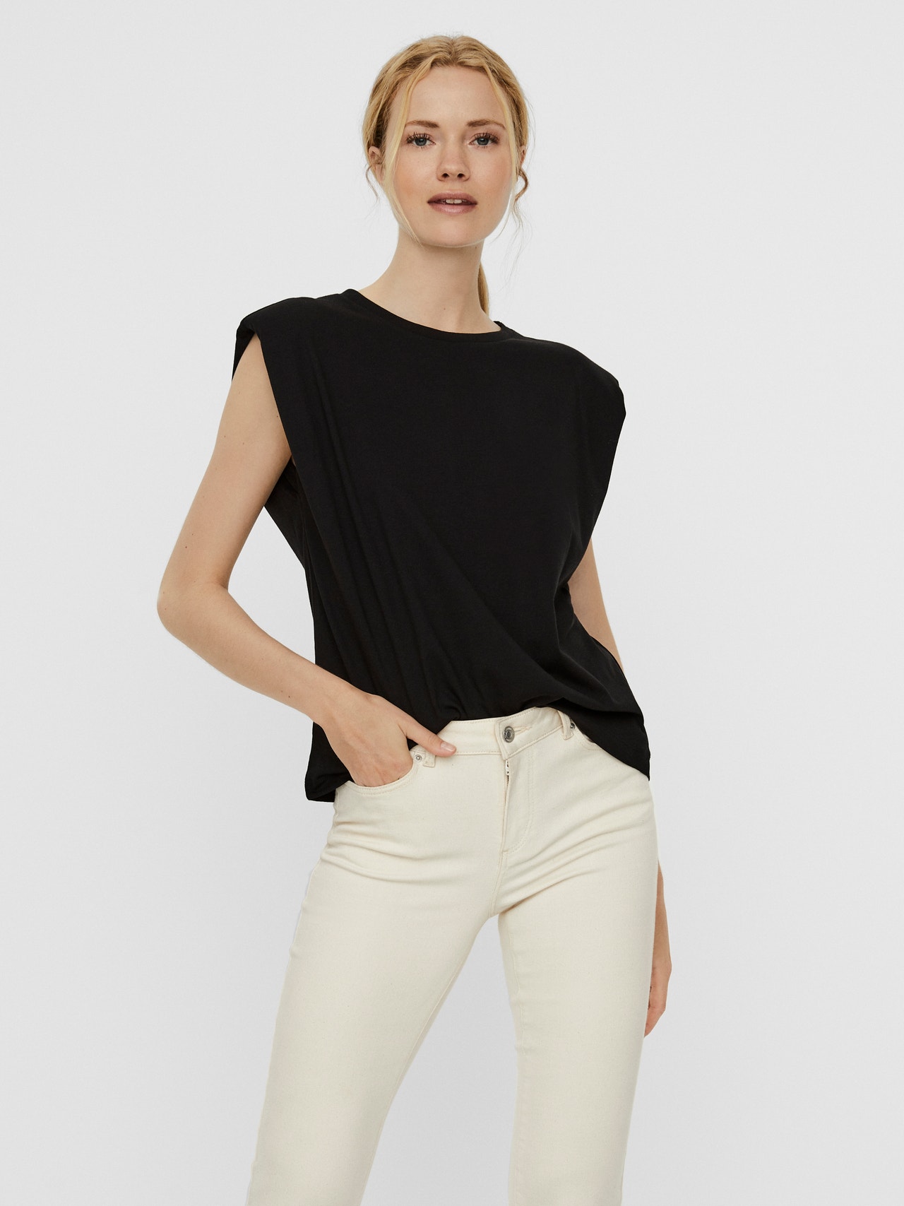 Sleeveless top made from a soft cotton material. The top is perfect for everyday wear. Style it with jeans and sneakers for a cool and casual look.