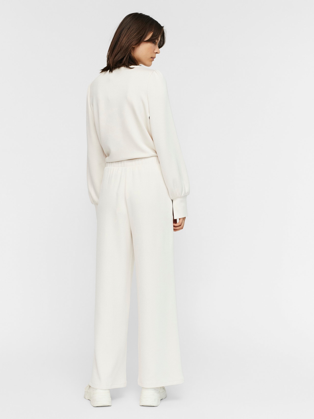 Trousers with piping details on the legs, a high waist, and an elastic waistline. Style these beautiful trousers with some heeled sandals, a cute blouse, and an oversized blazer for the ultimate office look.