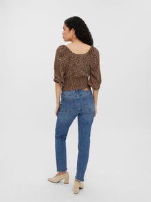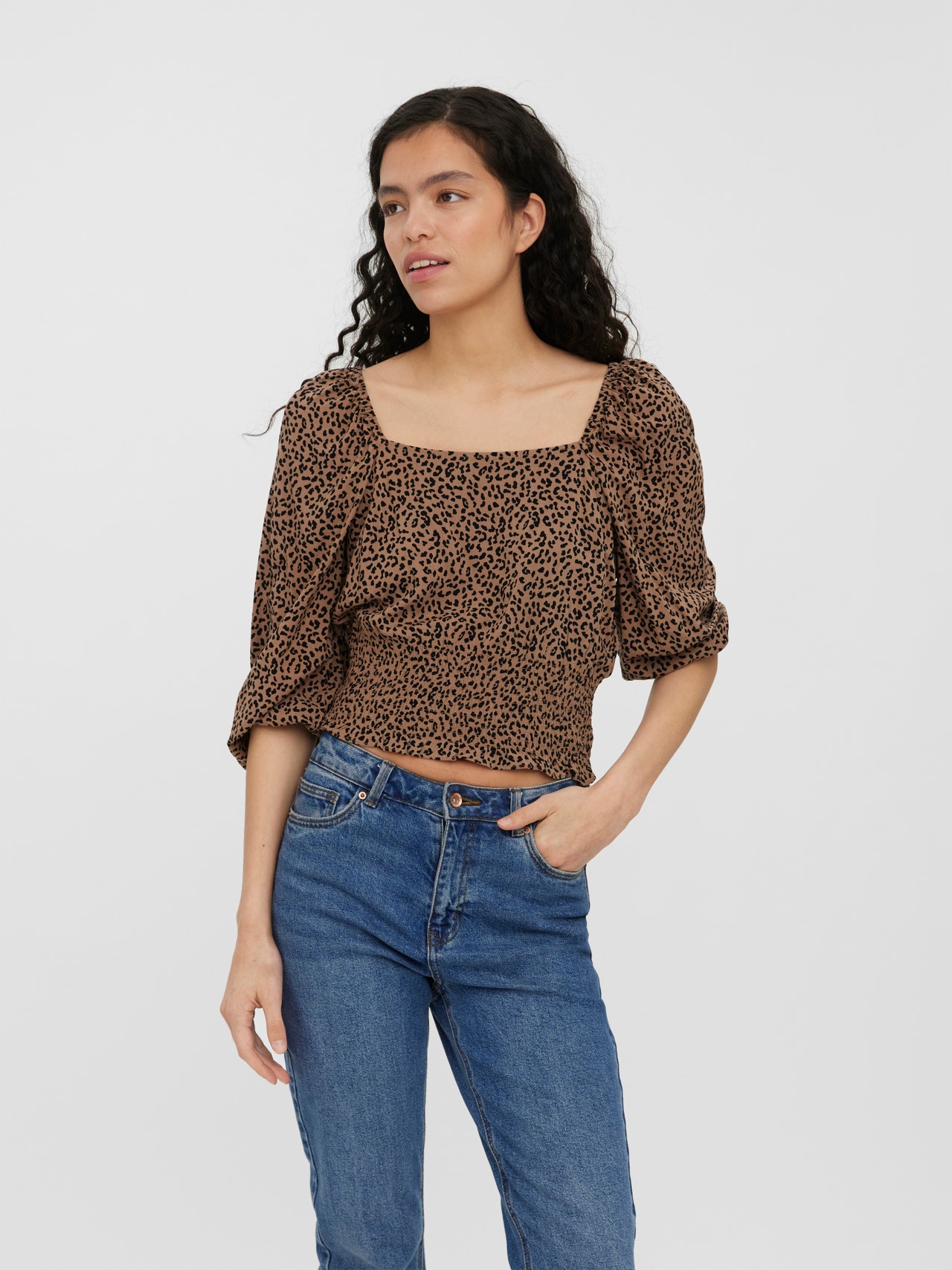 LDS TOP - CROPPED - 3/4 SLEEVES - SQUARE NECK - SMOCK AT WAIST