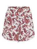 Loose fit shorts with an elastic waist, lace details on the bottom hem, and tie-strings at the waist. Style these cute shorts with a cool shirt and a pair of loafers for a stylish look.