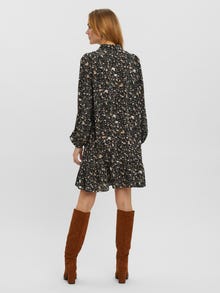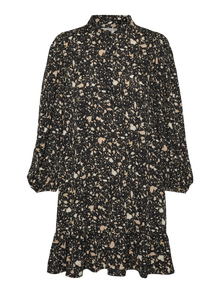 Shirt dress with puffy shoulders, elastic cuffs, balloon sleeves, and ruffles at the bottom. Style this gorgeous dress with a pair of heeled boots and your favourite jewellery for a stylish, go-to look.