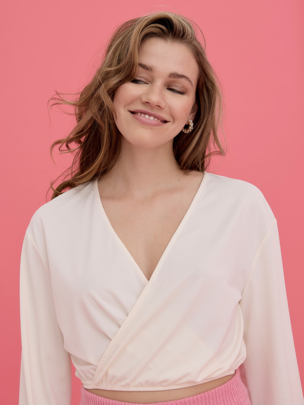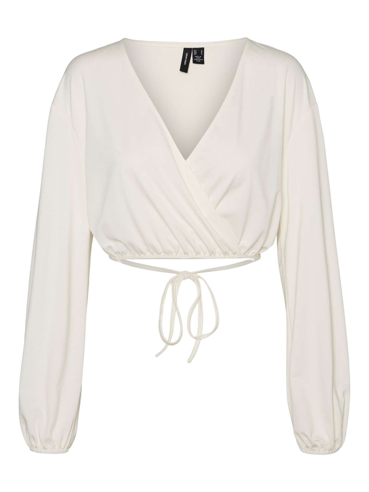 Cropped top with a wrap detail, balloon sleeves, and tie-strings around the waist. Style this cute top with a mini skirt and a pair of sandals for a stunning summer look.
