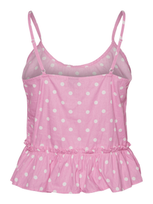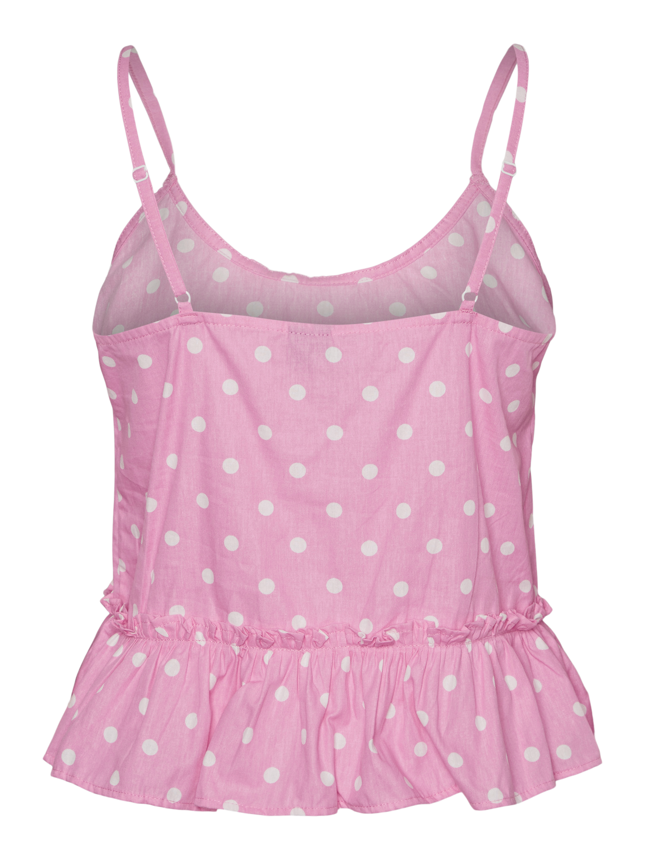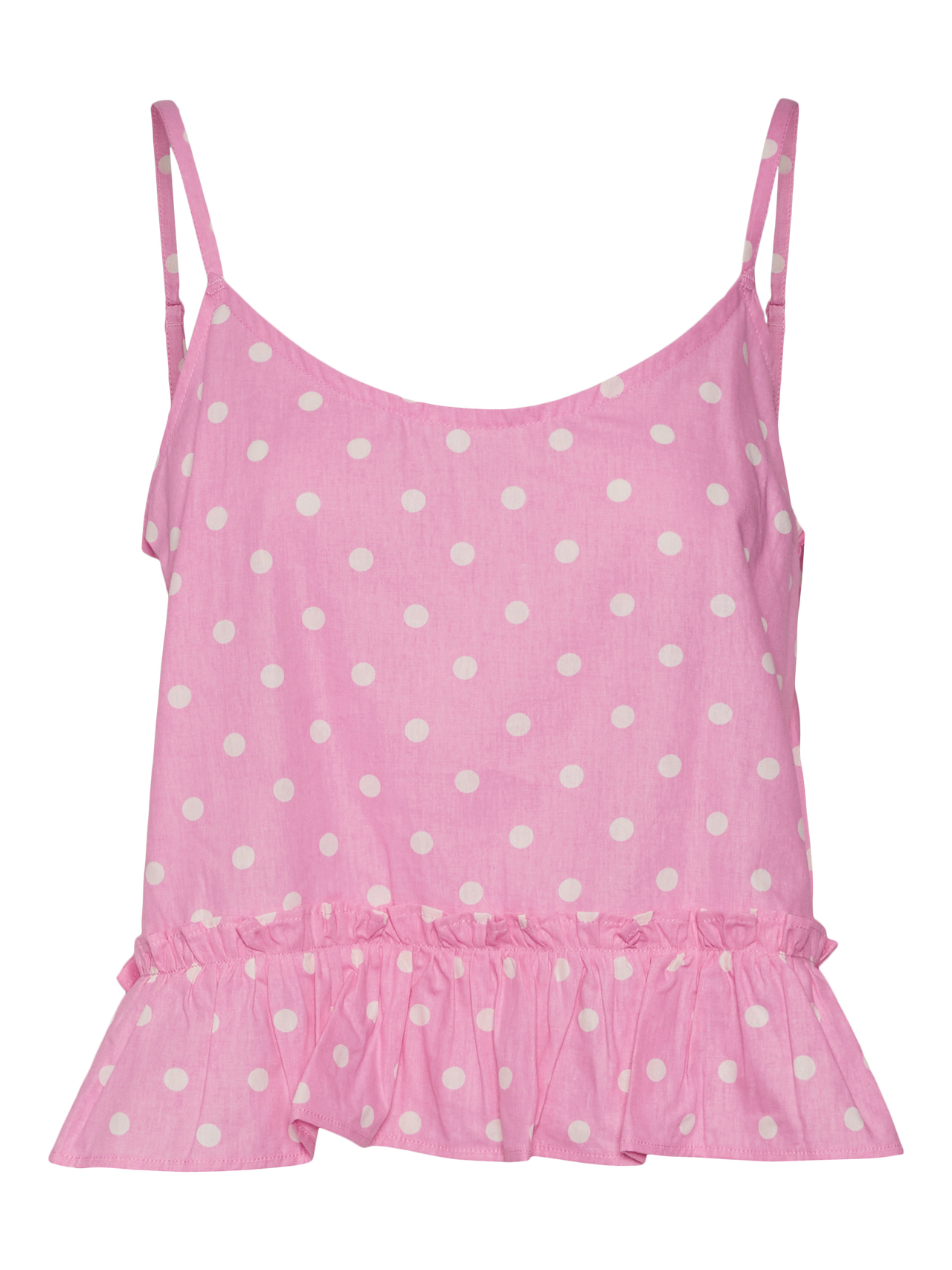 Nightwear top with ruffles at the bottom, a V-neck, and adjustable straps. Style this cute top with the matching shorts or with a pair of jeans and some heels for a night out.