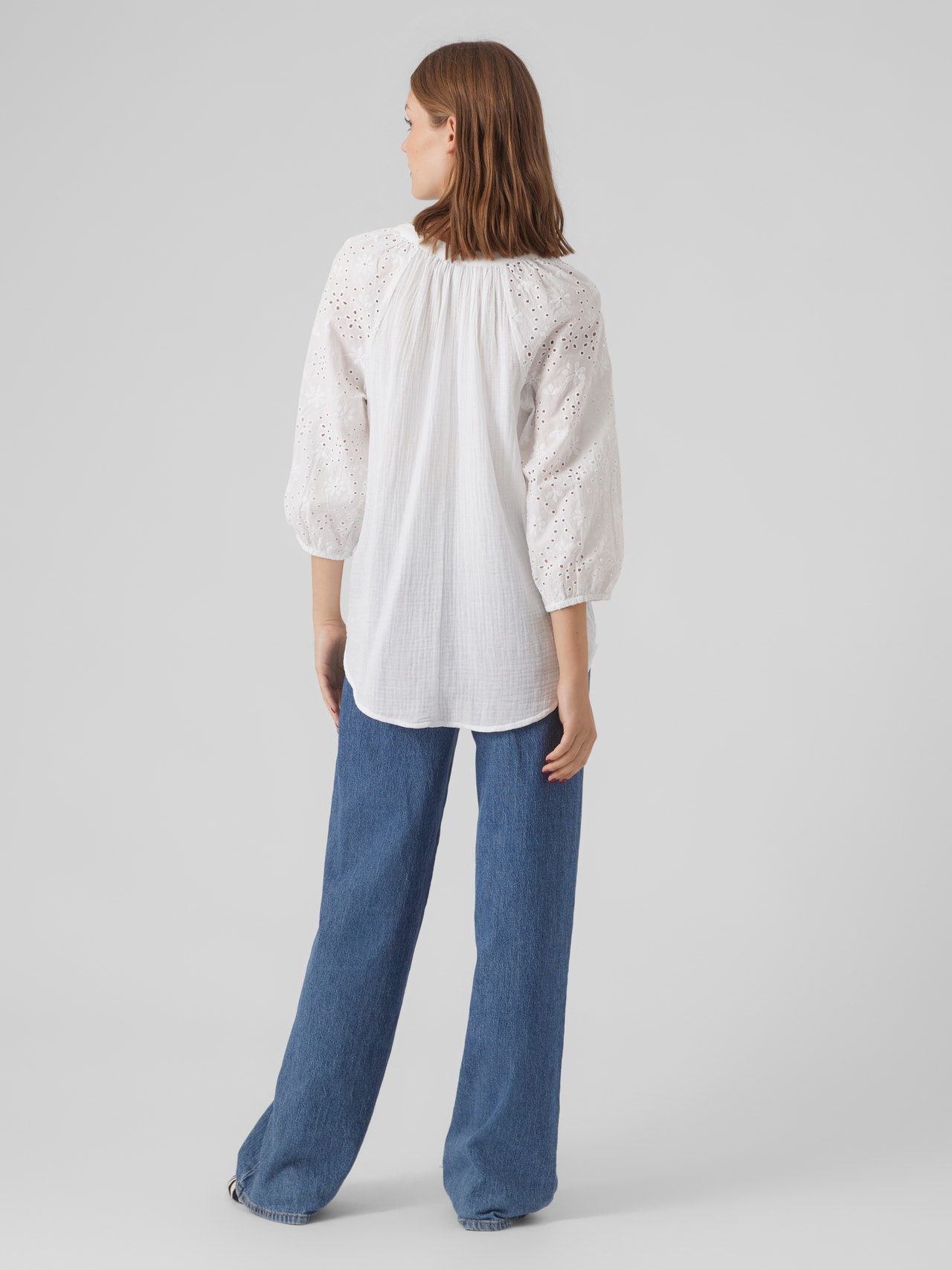 Je zult in bijna elke garderobe wel basics kunnen vinden. Onze basic tops maken de outfit af en deze top is daarop geen uitzondering. Combineer het met een shacket, mom jeans en chunky laarzen voor een relaxte en gave alledaagse look. - Producttype : Top - Hals : V-Hals - Mouw : 3/4 mouwen - Mouwen : Volumineuze mouwen - Manchetten : Manchetten met knoop - Details : Geborduurd detail - Pasvorm : Regular fit