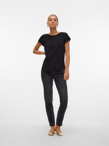 Je zult in bijna elke garderobe wel basics kunnen vinden. Onze basic tops maken de outfit af en deze top is daarop geen uitzondering. Combineer het met een shacket, mom jeans en chunky laarzen voor een relaxte en gave alledaagse look. - Producttype : Blouse - Hals : O-hals - Mouw : Korte mouwen - Pasvorm : Standard fit