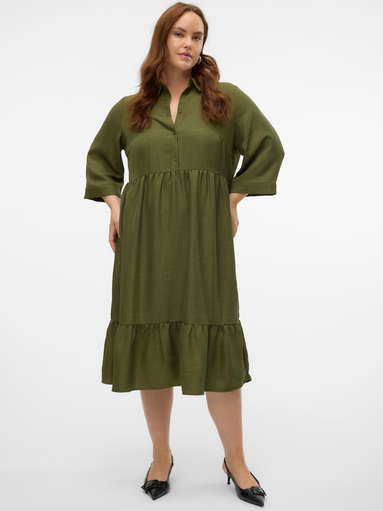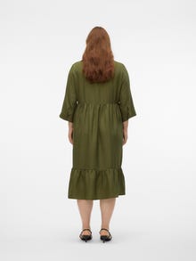Deze jurk is perfect voor dagen waarop je het lastig vindt om een outfit samen te stellen. De jurk combineert comfort en stijl, waardoor je hem perfect elke dag kunt dragen. Draag het naar wens casual of opvallend. Curve items zijn ontworpen voor curvy vrouwenlichamen.. - Producttype : Jurk - Hals : Overhemd kraag - Mouw : 3/4 mouwen - Sluiting : Knoopsluiting - Lengte/maat : Tot aan de enkel - Details : Naad bij de taille - Pasvorm : Regular fit