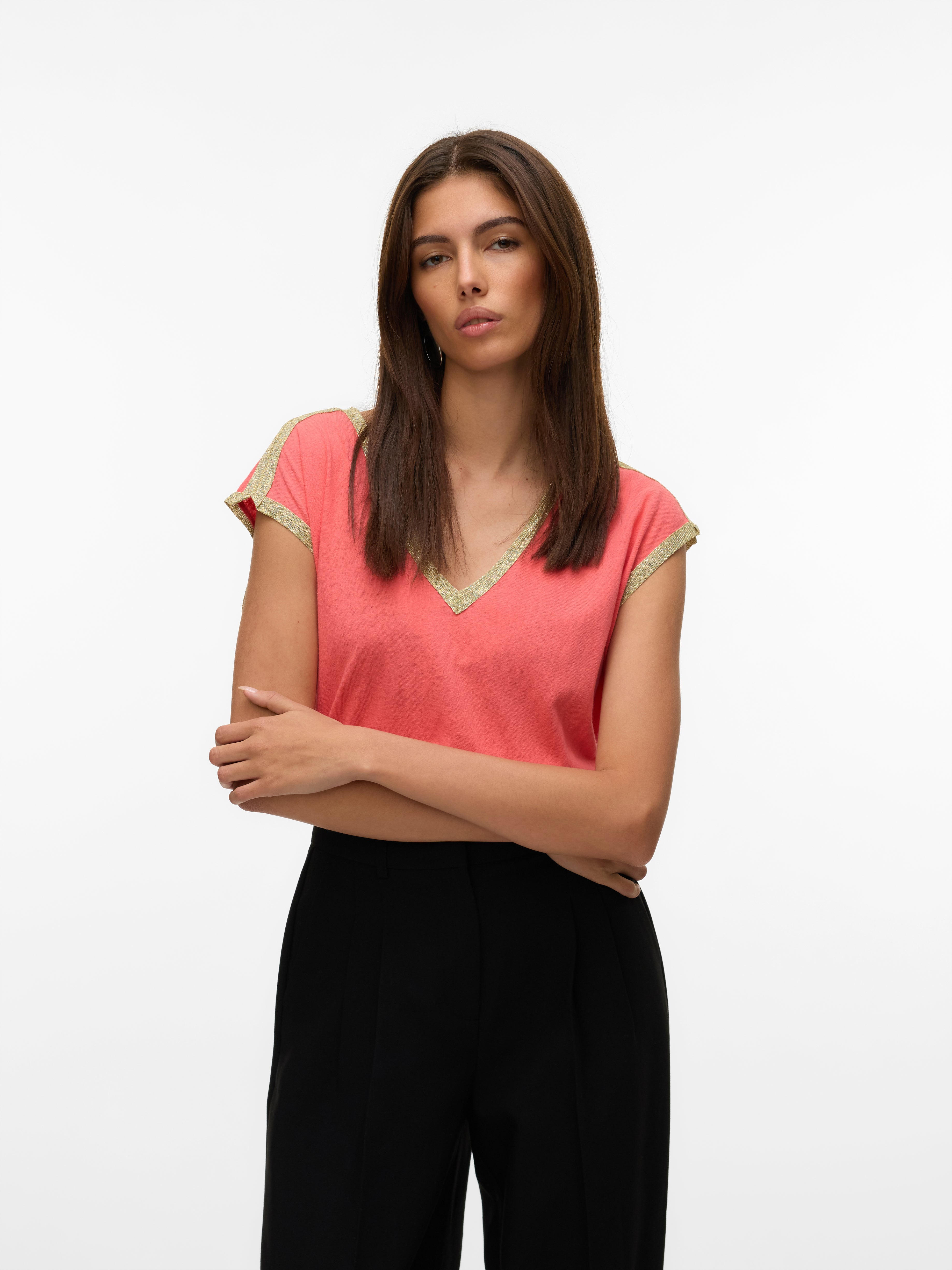 Draag bij twijfel een T-shirt! Je kunt nooit fout gaan met een T-shirt - een perfecte keuze voor een coole en tijdloze look. Draag dit T-shirt met een mooie boyfriend jeans en voeg een paar chunky sneakers toe voor een urban city look.
