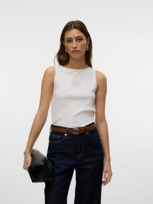 Je zult in bijna elke garderobe wel basics kunnen vinden. Onze basic tops maken de outfit af en deze top is daarop geen uitzondering. Combineer het met een shacket, mom jeans en chunky laarzen voor een relaxte en gave alledaagse look. - Producttype : Tank top - Hals : O-hals - Mouw : Korte mouwen - Details : Geborduurd detail - Pasvorm : Rib fit