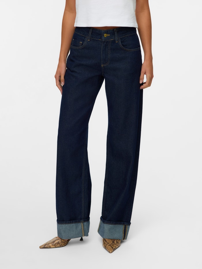 Het draait allemaal om volume, en deze wide fit jeans bewijzen het. De breedte geeft je outfit een casual en baggy touch. Combineer met een slim fit top om je taille te benadrukken, of ga er helemaal voor met een oversized blouse om tot een vlotte en comfortabele look te komen..