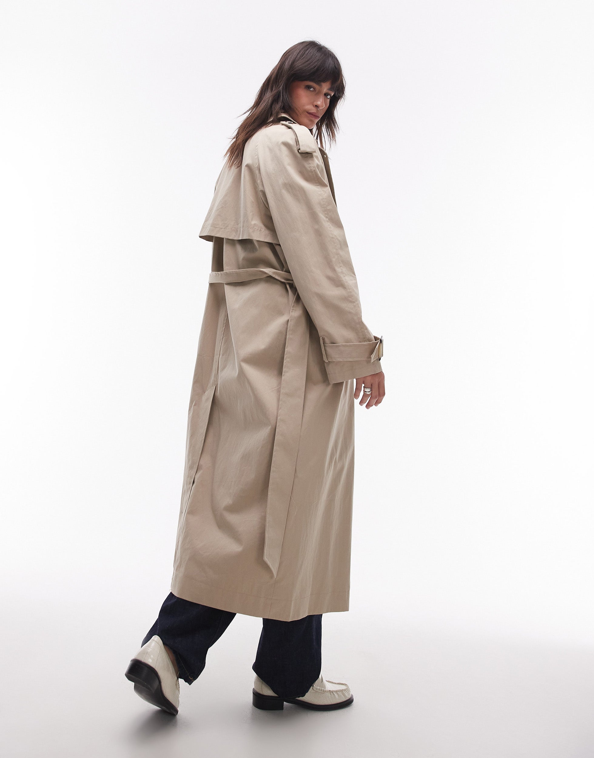 Topshop longline oversized trench coat in stone - STONE