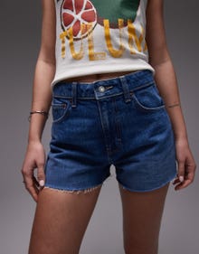 Topshop denim A-line shorts in mid blue - MBLUE
