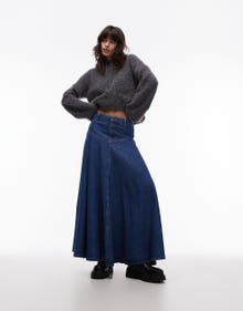 Topshop denim A-line full skirt in mid blue - MBLUE