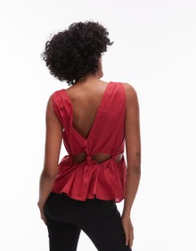 Topshop cotton voil sleeveles knot waist top in red - RED