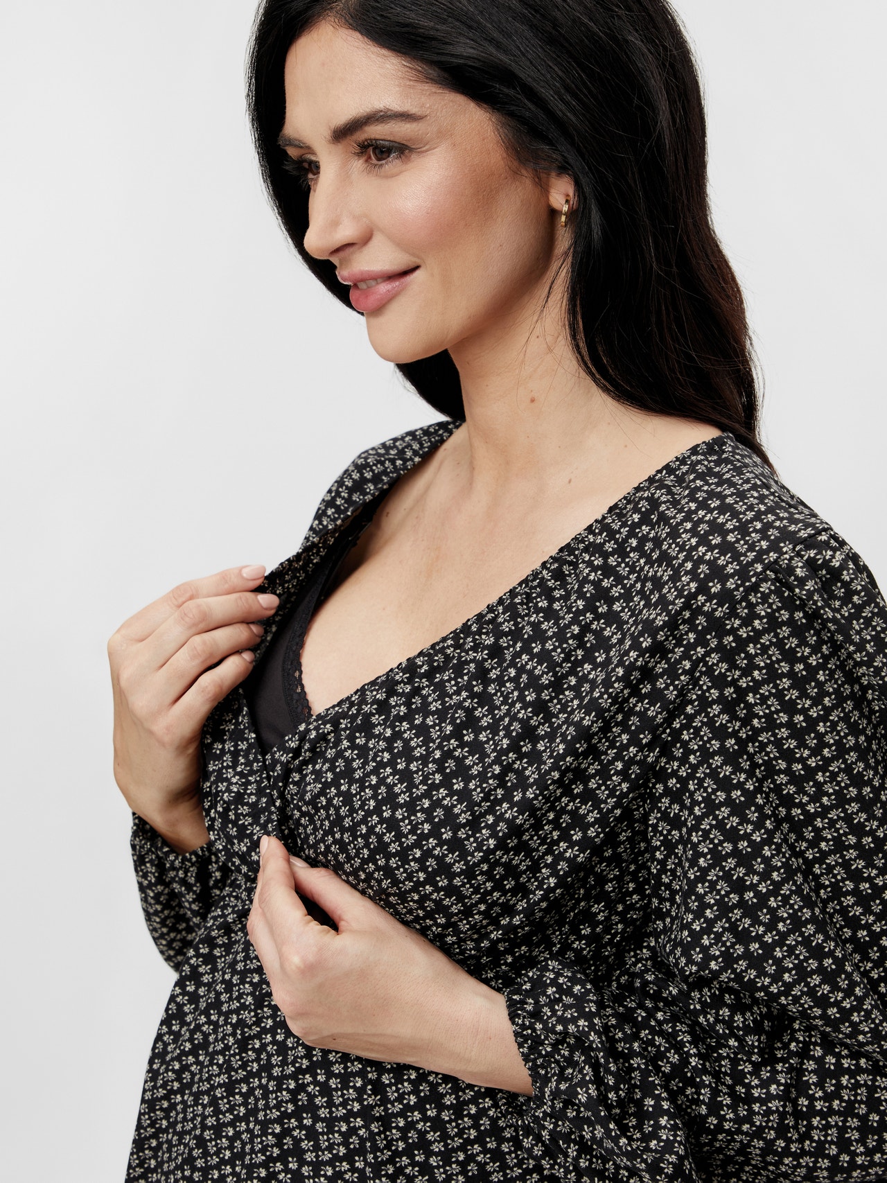 LADIES NURSING TOP V-NECK W. WRAP AND ELASTIC FOR TESS NURSING FUNCTION LONG, VOLUMNIOUS SLEEVES W. ELASTIC IN END ELASTIC IN WAIST FRONT AND BACK Composition: 100% viscose