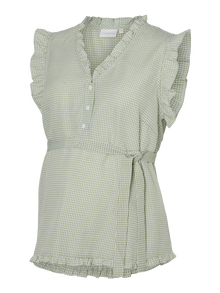 - Details : Riem in de taille, Knoop detail, Naadlijn boven de buik, Ruches, Verzamelde details, Voedingsfunctie met knoop- of ritssluiting