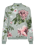 Printed bomber jacket with a zipper closure in the front, and rib details on the cuffs, neckline, and bottom hem. This cute bomber jacket is perfect for spring. Style it with some high waisted jeans, a simple t-shirt, and a pair of chunky sneakers and you are ready to leap into spring.