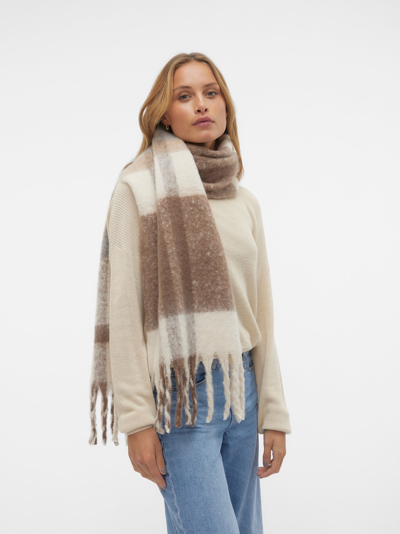 Ten szal może stać się twoim najlepszym kompanem w chłodne miesiące. Dzieki swojemu klasycznemu wzorowi z łatwością podkreśli ubranie wierzchnie, stanowiąc modny, ciepły i wygodny dodatek. - Rodzaj produktu : Szalik - Szczegóły : Frędzle - Szerokość : 35.0 - Długość : 180.0