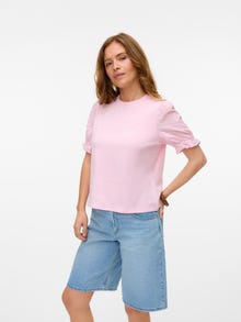 Szukasz nowego ulubionego topu na co dzień? Mamy pomysł. Ten top stanie się twoim ulubionym w dni, gdy nie masz ochoty na szalonego, ale chcesz wyglądać modnie. Nałóż do niego błyszczącą biżuterię lub noś do prostej lekkiej kurtki. - Rodzaj produktu : Góra - Szyja : Okrągły dekolt - Rękaw : Krótkie rękawy - Rękawy : Obszerne rękawy - Mankiety : Elastyczne mankiety - Długość/rozmiar : Produkt zgodny z rozmiarem - Szczegóły : Haft - Krój : Krój regularny