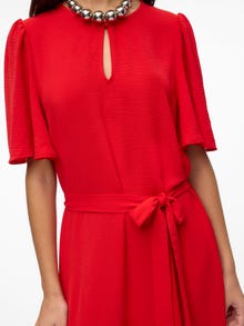 Sukienka stanowi idealną opcję na dni, gdy skomponowanie odpowiedniego stroju wydaje się niemożliwe. Łączy wygodę i styl, dzięki czemu jest idealna na każdy dzień. Stylizuj ją elegancko lub swobodnie, w zależności od upodobań. - Rodzaj produktu : Sukienka - Szyja : Okrągły dekolt - Rękaw : Rękawy 2/4 - Rękawy : Bufki - Zamknięcie : Zapięcie na guzik - Długość/rozmiar : Do kostek - Szczegóły : Pasek w talii - Krój : Krój regularny