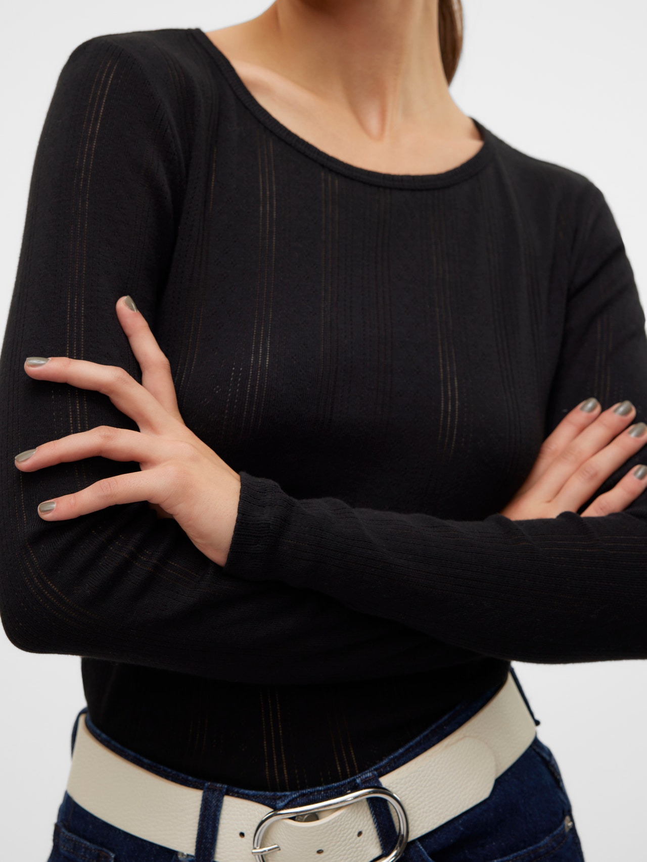 Szukasz nowego ulubionego topu na co dzień? Mamy pomysł. Ten top stanie się twoim ulubionym w dni, gdy nie masz ochoty na szalonego, ale chcesz wyglądać modnie. Nałóż do niego błyszczącą biżuterię lub noś do prostej lekkiej kurtki. - Rodzaj produktu : Góra - Szyja : Okrągły dekolt - Rękaw : Długie rękawy - Krój : Krój regularny