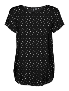 W razie wątpliwości załóż koszulkę! Z T-shirtem nigdy się nie pomylisz - idealny wybór dla fajnego i ponadczasowego wyglądu. Noś ten T-shirt z ładnymi dżinsami typu boyfriend i dodaj parę masywnych trampek, aby uzyskać miejski wygląd. - Rodzaj produktu : T-shirt - Szyja : Okrągły dekolt - Rękaw : Krótkie rękawy - Szczegóły : Zaokrąglony dół - Wzór : Nadruk powtarzający się na całej powierzchni produktu. - Krój : Krój standardowy
