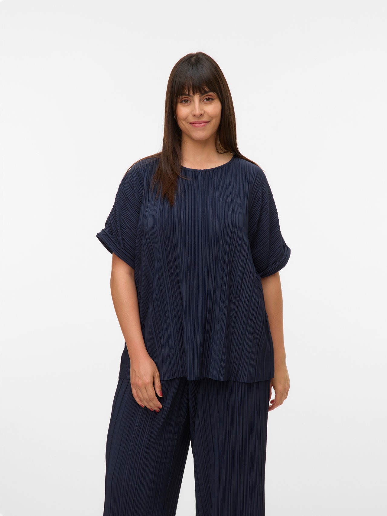 Podstawowe ubrania muszą obowiązkowo znaleźć się w każdej szafie. Nasze proste topy pomagają na stworzenie stroju, a ten top nie jest wyjątkiem. Noś go pod kurtkę koszulową, do luźnych jeansów o kroju mom, ciężkich botków i już masz luźny zestaw na co dzień. Modele Curve zaprojektowano tak, by dobrze układały się na kobiecych sylwetkach.. - Rodzaj produktu : Plisowana góra - Szyja : Okrągły dekolt - Rękaw : Krótkie rękawy - Rękawy : Opadające ramiona - Podszewka : Podszewka z poliestru zapobiega prześwitywaniu - Krój : Krój regularny