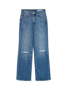 - Rodzaj produktu : Jeansy o kroju wide - Zamknięcie : Zapięcie na guzik i suwak - Kieszenie : Tylne kieszenie, Kieszeń na monetę, Kieszenie przednie - Talia : Wysoki stan - Szczegóły dotyczące nóg : Zniszczone obszycie - Krój : Krój wide leg