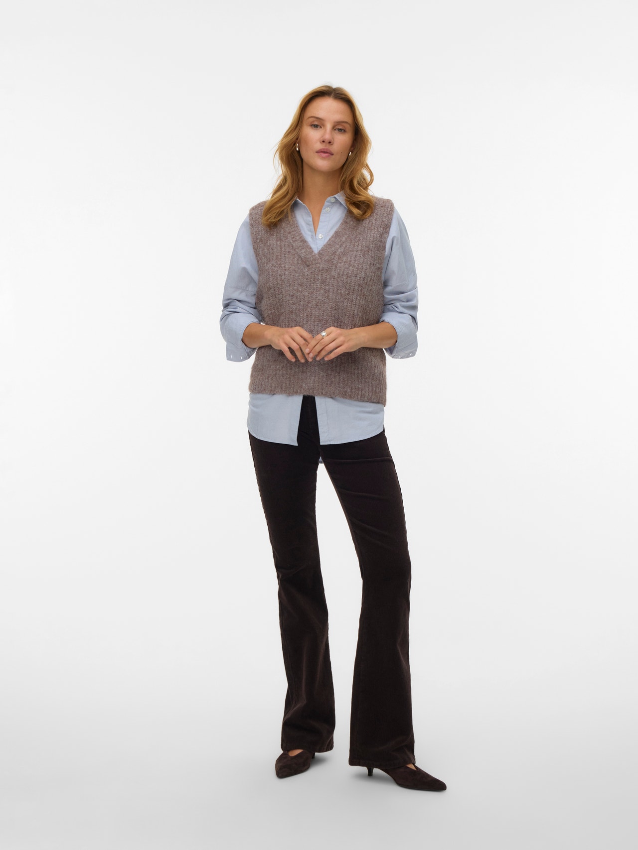 Dzianinowa kamizelka to zawsze mądry wybór, niezależnie od tego, czy potrzebujesz się rozgrzać, czy dodać ciekawy element to stroju. Wygodnie przechodzisz w niej od zimy po jesień bez utraty stylu czy wygody. Świetna kamizelka pozwala na tworzenie wyrafinowanych stylizacji, a jednocześnie wprowadza miękkość. Stosuj ją, by stonować klasyczną koszulę oversize i uzyskać bardziej spójną stylizację. Absolutnie obowiązkowa pozycja w każdej szafie.