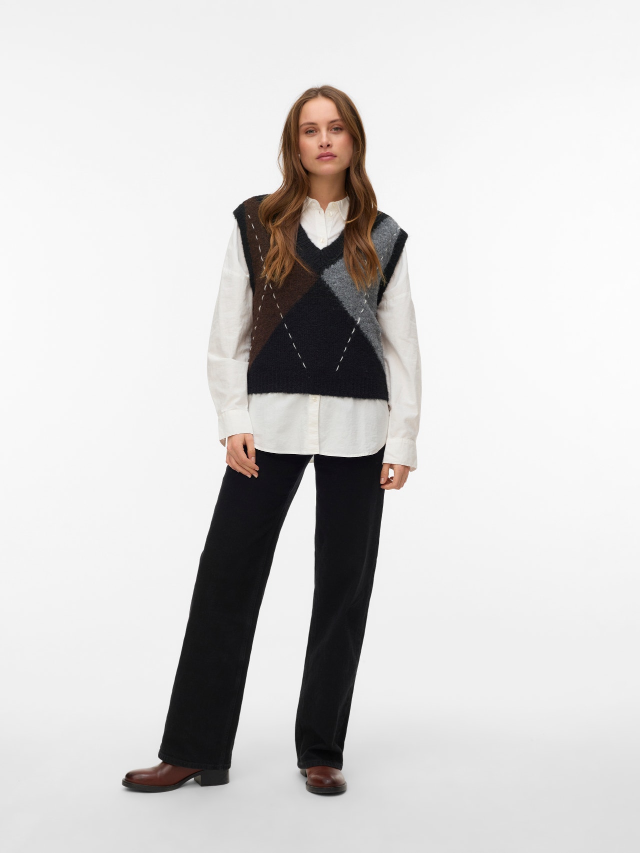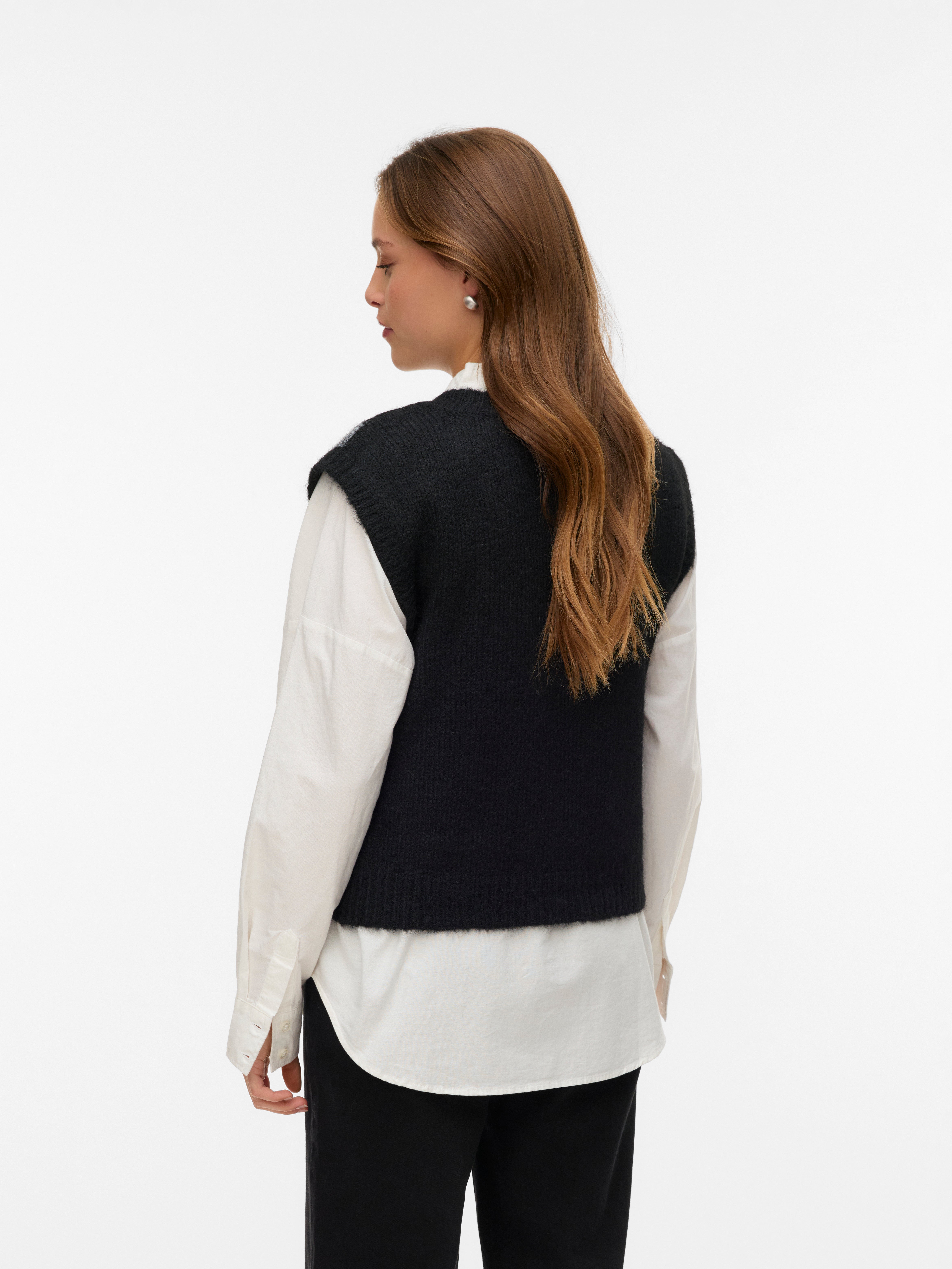 Dzianinowa kamizelka to zawsze mądry wybór, niezależnie od tego, czy potrzebujesz się rozgrzać, czy dodać ciekawy element to stroju. Wygodnie przechodzisz w niej od zimy po jesień bez utraty stylu czy wygody. Świetna kamizelka pozwala na tworzenie wyrafinowanych stylizacji, a jednocześnie wprowadza miękkość. Stosuj ją, by stonować klasyczną koszulę oversize i uzyskać bardziej spójną stylizację. Absolutnie obowiązkowa pozycja w każdej szafie.