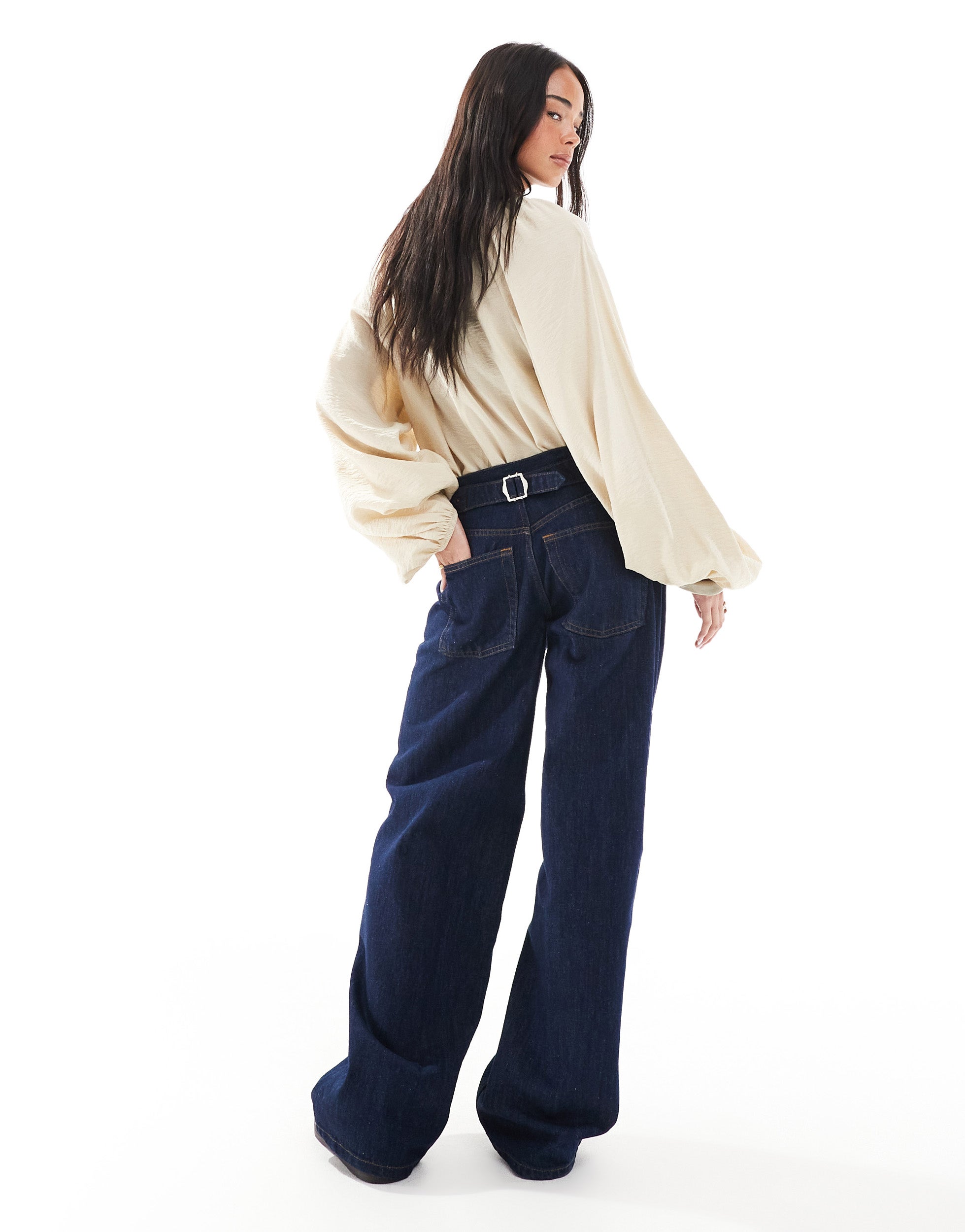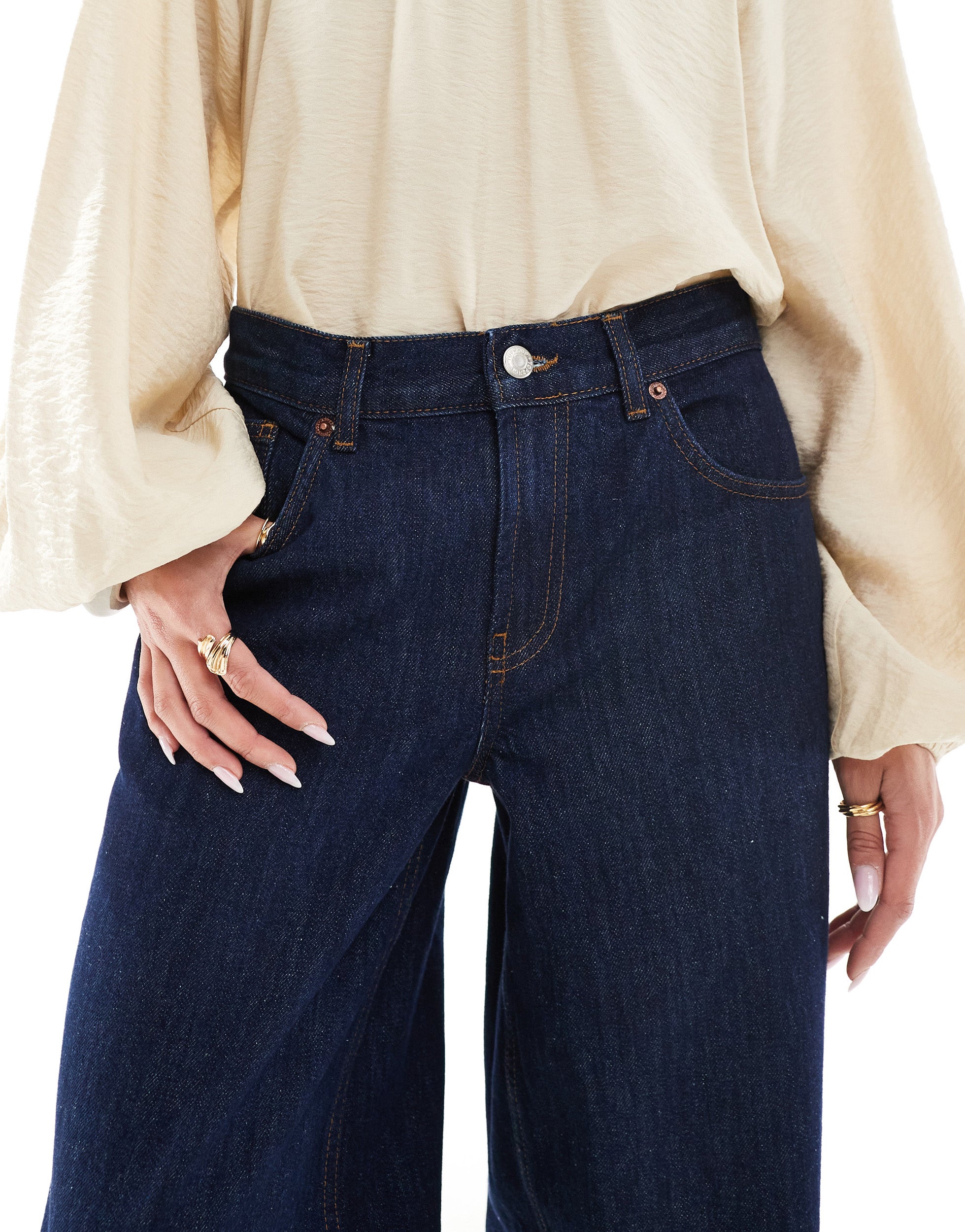 Topshop Cinch low rise relaxed jean in raw indigo - MBLUE