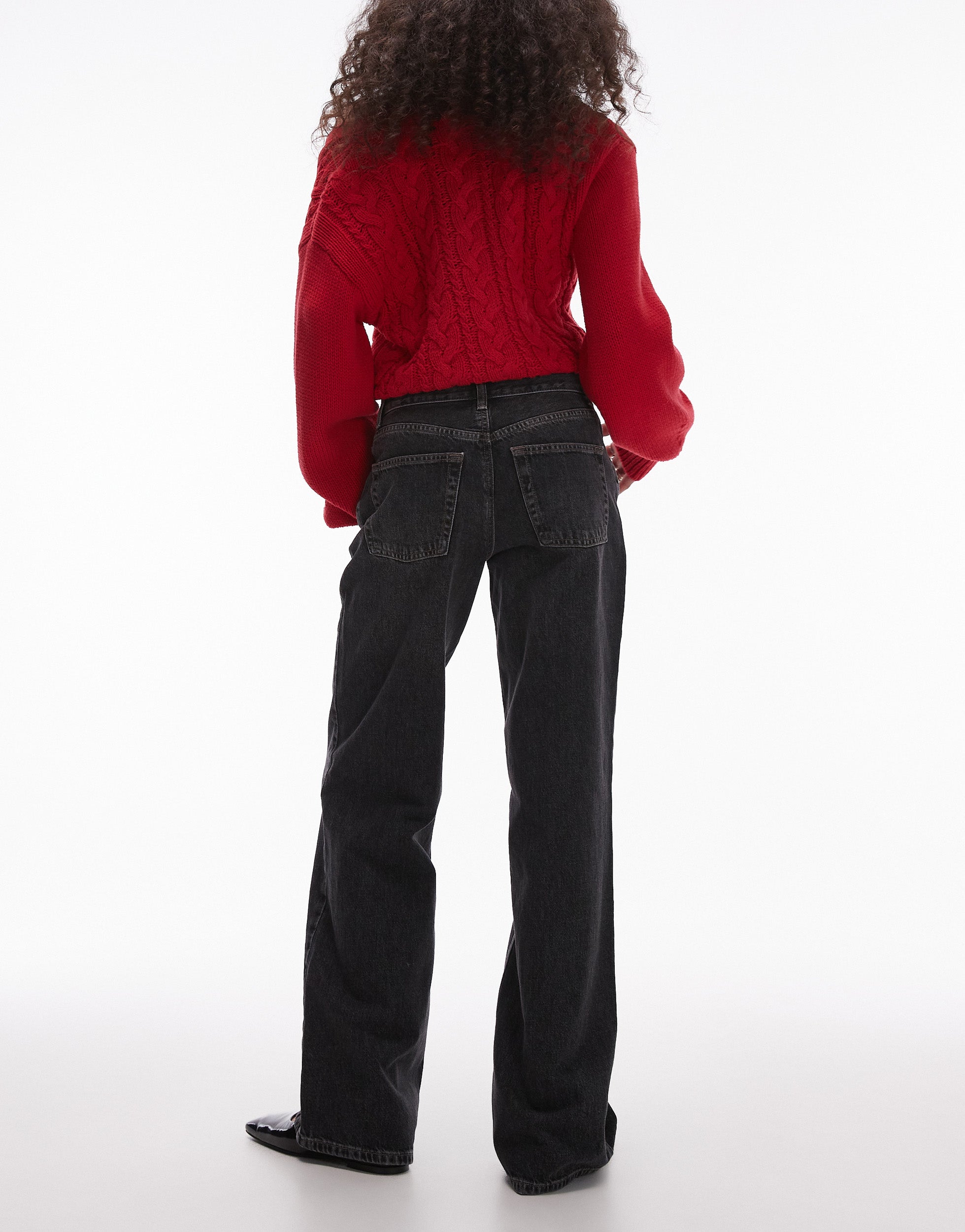 Topshop Ember low rise wide leg jean in washed black - BLACK