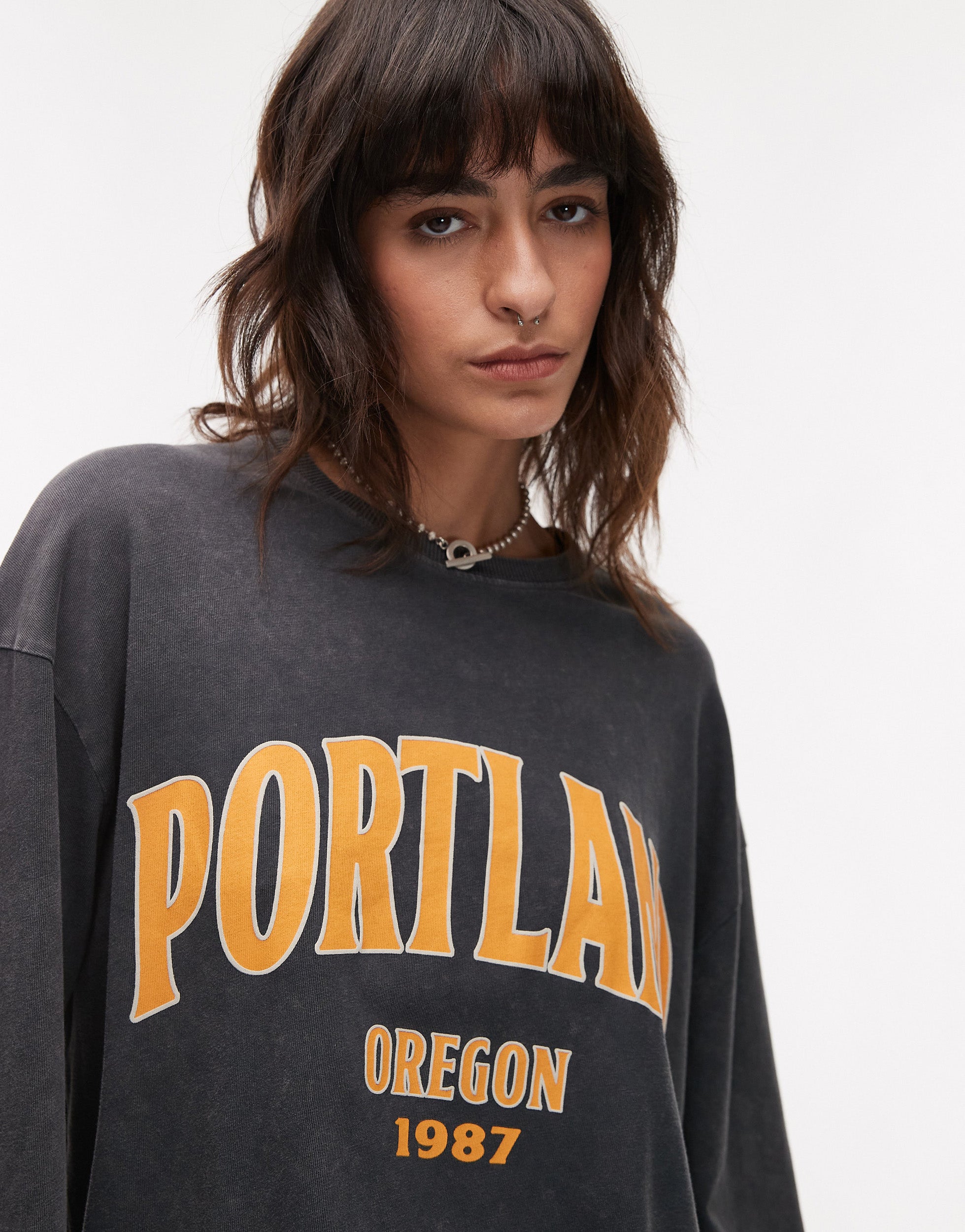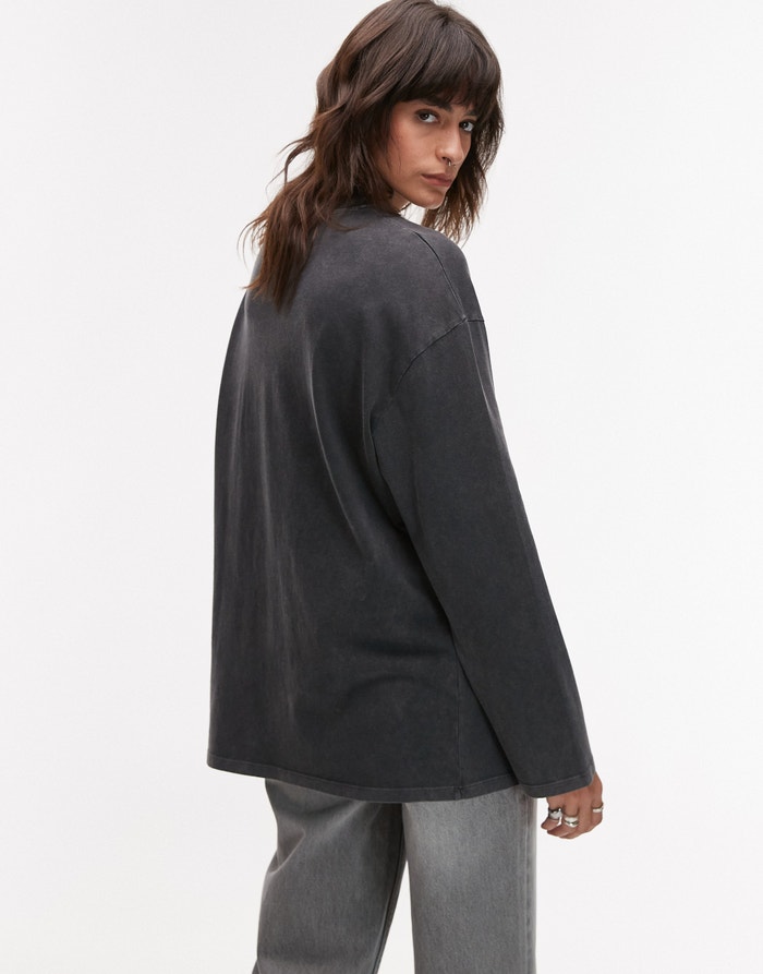 Topshop graphic Portland long sleeve skater tee in grey - GREY