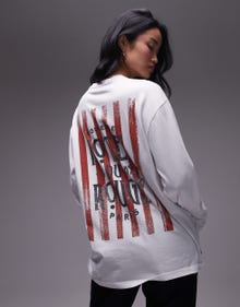 Topshop graphic hotel rouge long sleeve skater tee in white - STONE