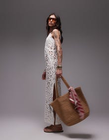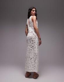 Topshop knitted crochet maxi dress in ivory - IVORY