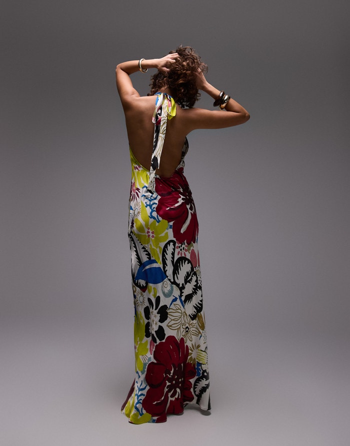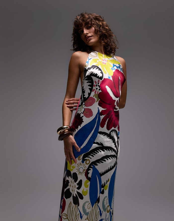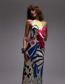 Topshop halter neck maxi dress in bold floral print - MULTI