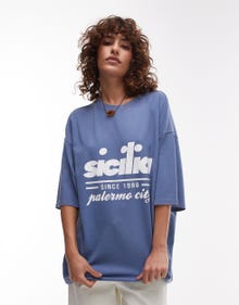 Topshop graphic Sicilia oversized tee in blue - MBLUE