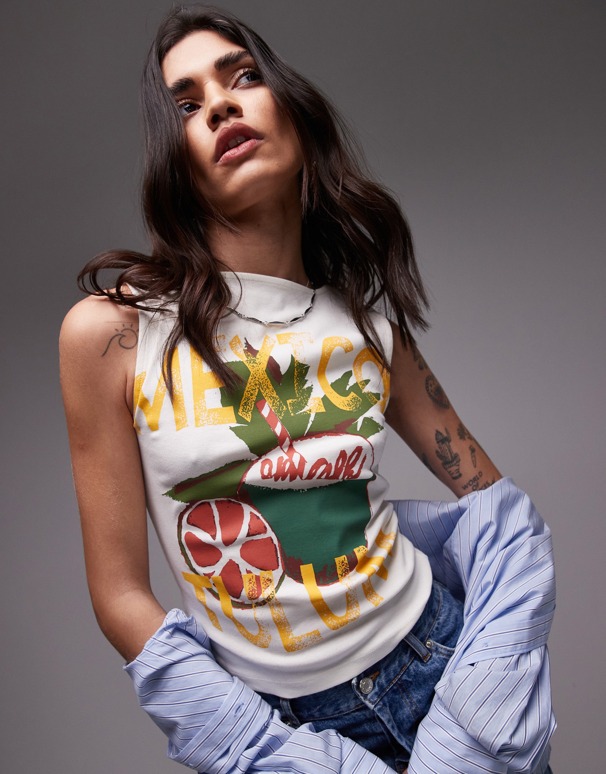 Topshop graphic Mexico Tulum tank in ecru - CREAM