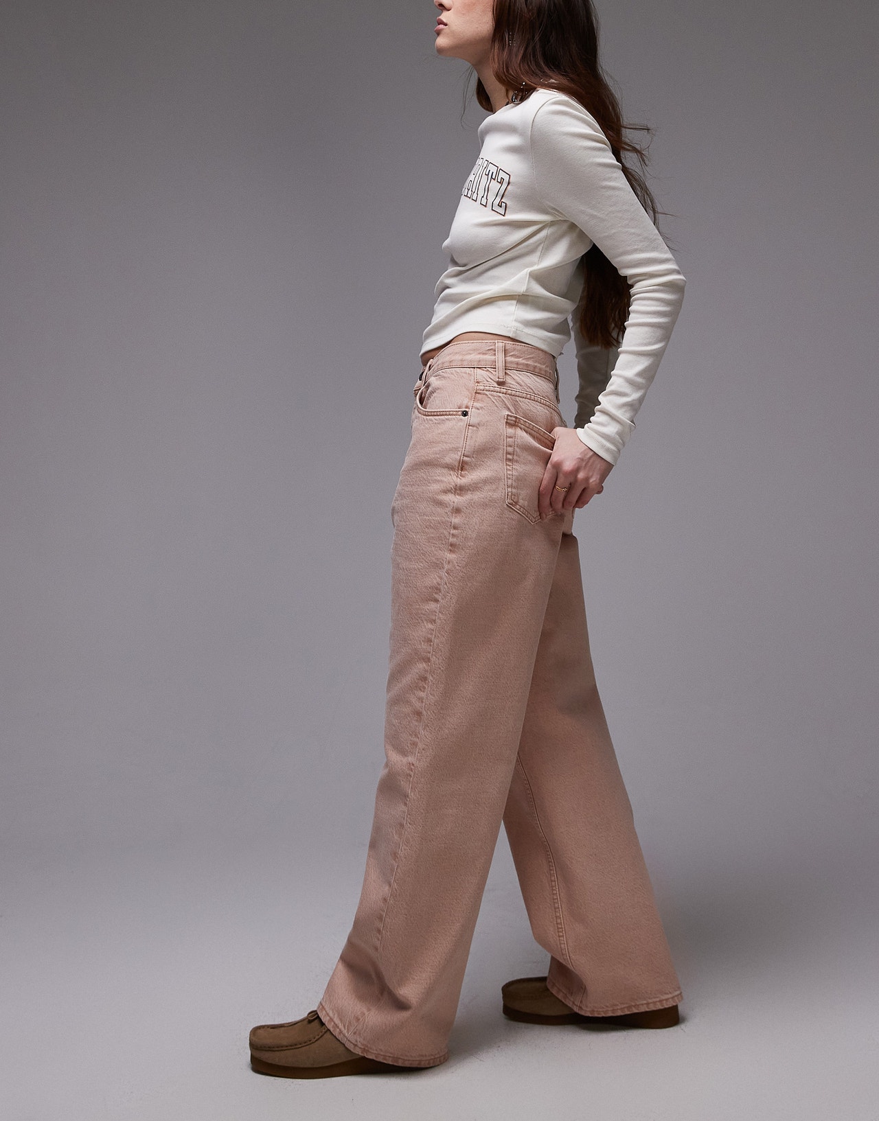 Topshop mid rise loose fit straight jeans in blush - PINK