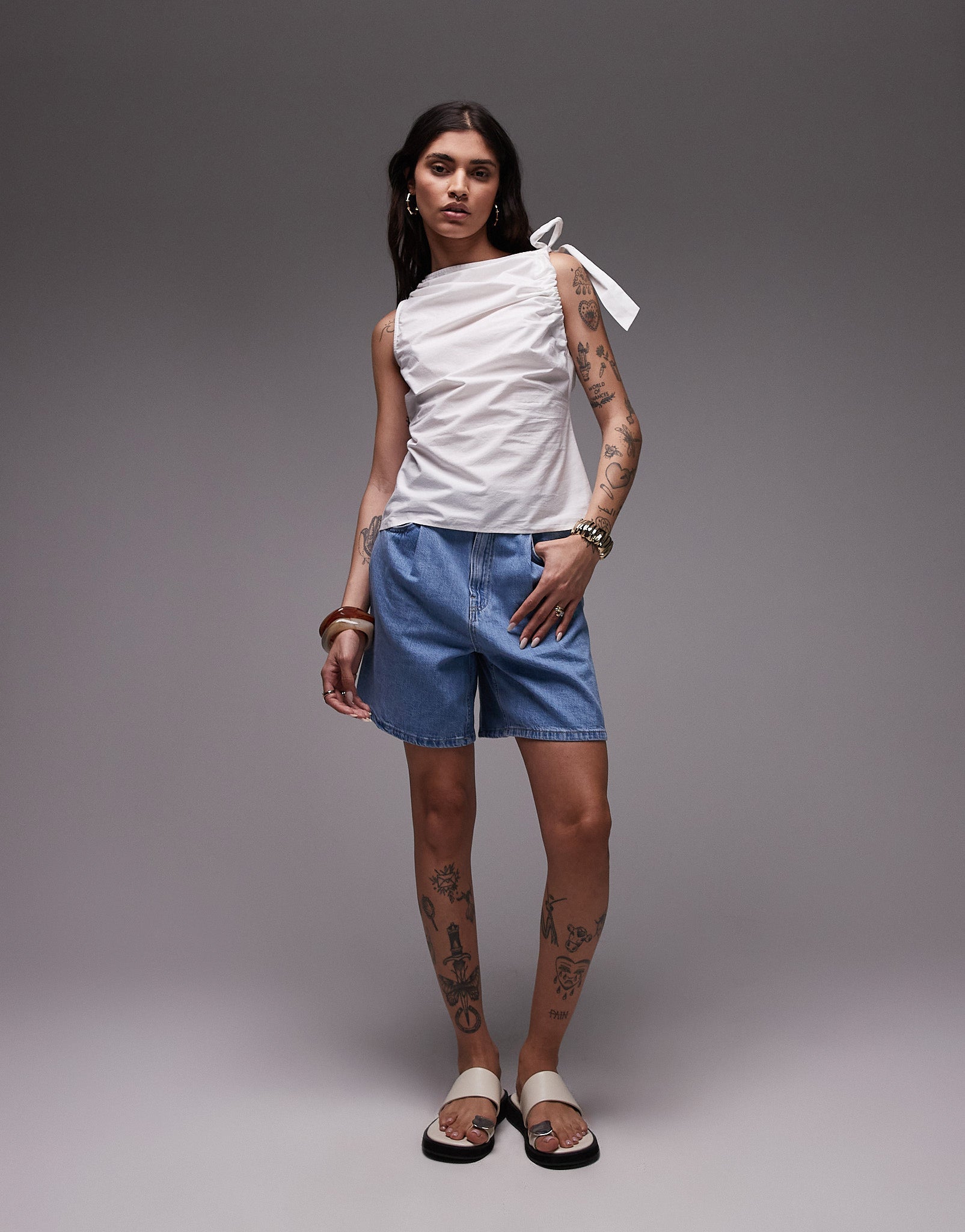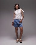 Topshop poplin ruch shoulder sleeveless top in ivory - IVORY