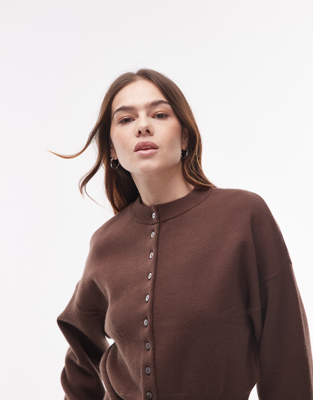 Topshop knitted compact fitted waist cardi in chocolate - BROWN