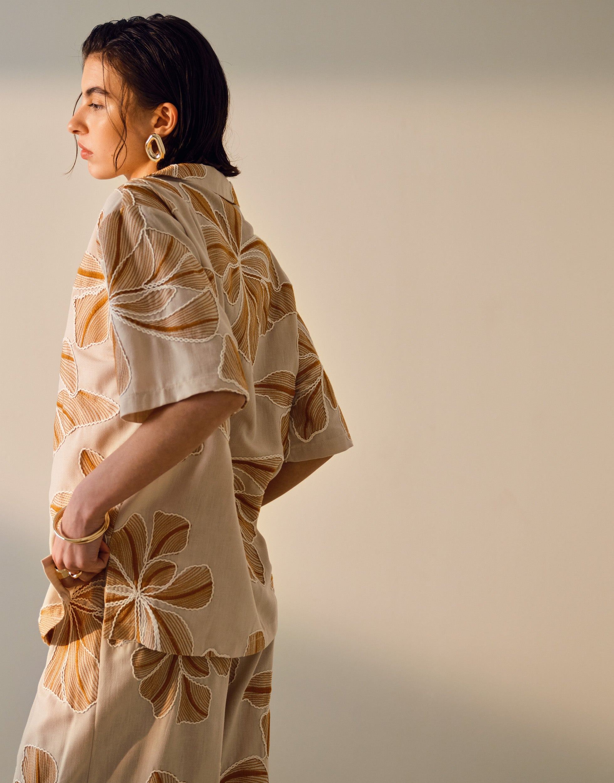 Topshop short sleeve linen shirt in natural - BEIGE