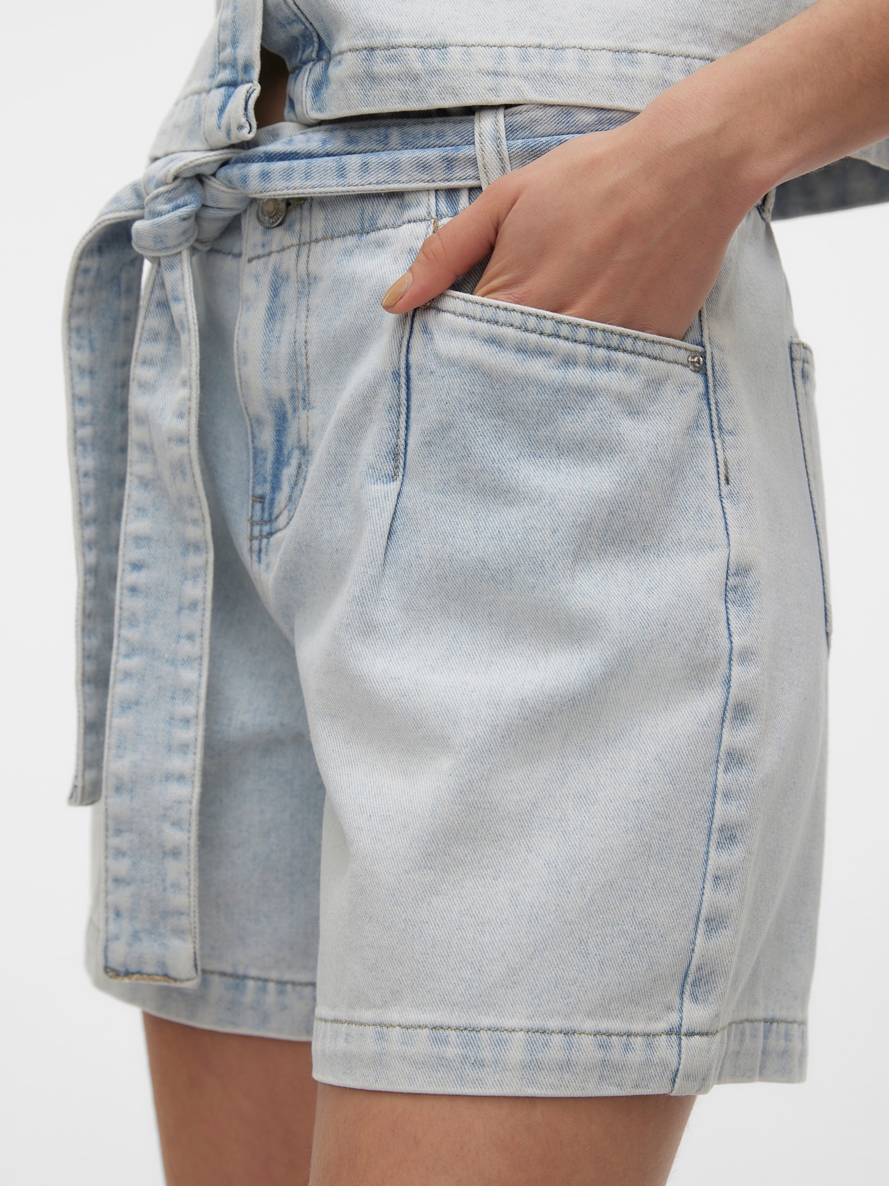 Um ícone de vestuário que só fica melhor estação após estação. Com um par de calções de ganga vai chegar longe. Fácil de amar, fácil de dar-lhe estilo, por exemplo, com um par de saltos e um blazer - ou sapatilhas para um look quotidiano sem esforço. - Tipo de produto : Calções de Ganga - Fecho/braguilha : Fecho de botão, Fecho de correr na braguilha - Bolsos : Bolsos traseiros, Bolsos frontais - Cintura/cós : Cós Alto - Detalhes extra : Cinto na cintura - Ajuste : Regular Fit