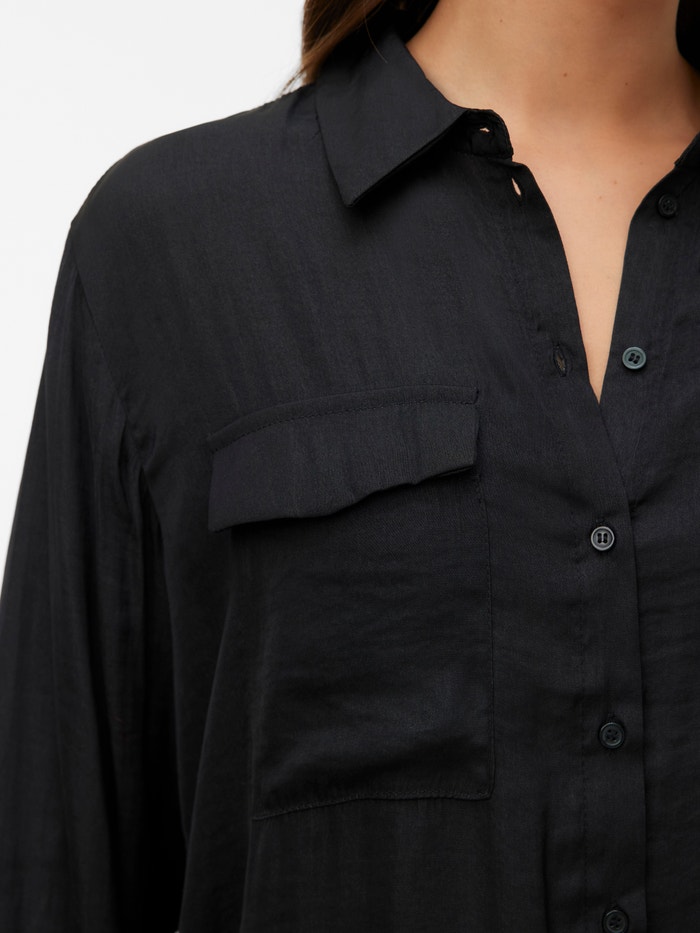 Táto košeľa je elegantným a všestranným doplnkom vášho šatníka, pretože sa dá nosiť samostatne, ako aj otvorená s jednoduchým topom pod ňou. Skombinujte ho s klasickými džínsami a jednoduchým tričkom pre pohodový každodenný vzhľad alebo ho vylepšite pridaním nohavíc a podpätkov.