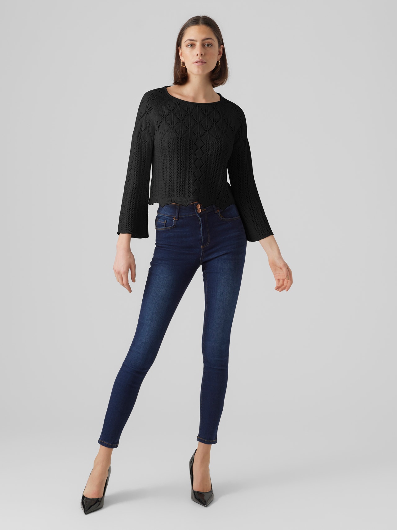 Osnovni kos garderobe, ki bo deloval v vseh letnih časih in bo vašemu videzu dodal udoben, prijeten pridih. Če vprašate nas, je pleteni top priljubljen slog skozi vse leto! Poiščite tistega, ki vam ustreza, in ga morda kombinirajte s parom kavbojk. Psst ... prilagodite svoje čevlje glede na letni čas, da bo vaš videz pritegnil pozornost. - Vrsta izdelka : Pleten pulover - Vrat : Čolni izrez - Rokav : 3/4 rokavi (3/4)