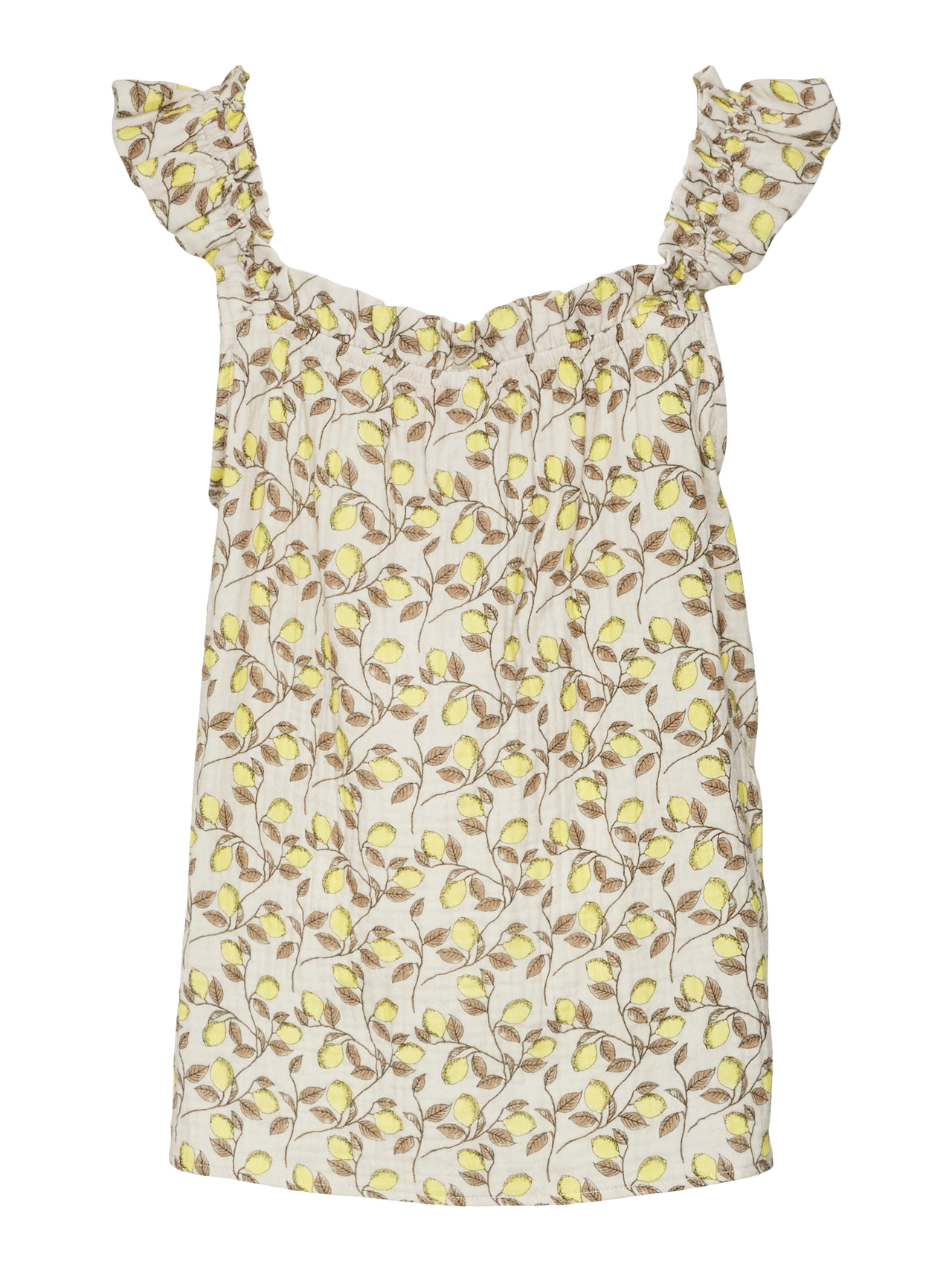 Posodobite garderobo vaše malčice z luštno majico za deklice - popolno vsakodnevno osnovno oblačilo, ki jo bo spremljalo skozi teden. Ta slog se odlično ujema skoraj z vsem in doda zabaven pridih. - Vrsta izdelka : Top - Vrat : Kvadratni izrez - Rokav : Brezrokavnik (B/R) - Dodatne podrobnosti : Volančki - Prileganje : Običajno prileganje