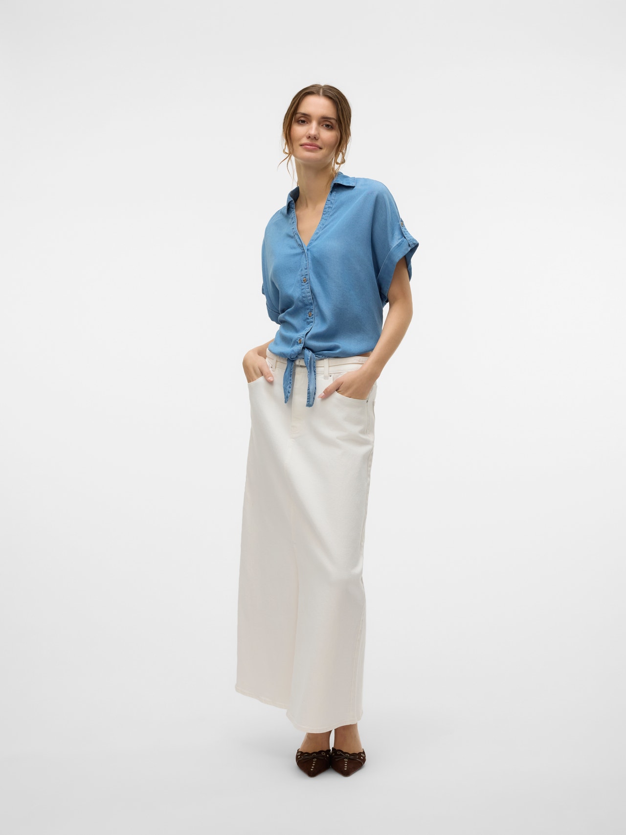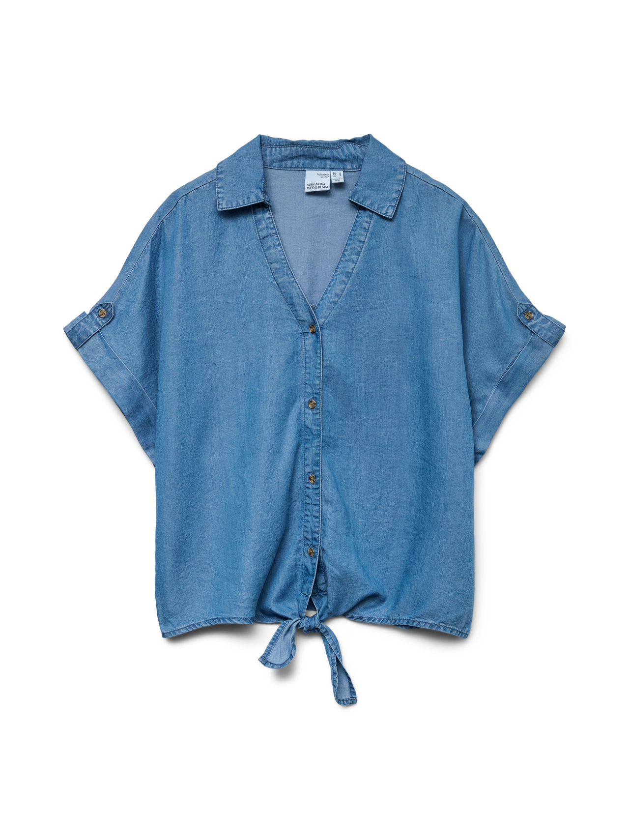 Je kdo omenil jeans srajco? Ja, prosim! Denim je resničen klasičen kos oblačila in vedno doda sproščen in kul videz tvojemu izgledu. Poiščite svoj novi najljubši kos oblačila in znova se zaljubite v videz denim oblačil. - Vrsta izdelka : Denim srajca - Vrat : Ovratnik srajce - Rokav : Kratki rokavi (K/R) - Rokavi : Rokavi z zavihkom - Zaključevanje : Zapenjanje na gumb - Dodatne podrobnosti : Detajl pentlje - Prileganje : Običajno prileganje