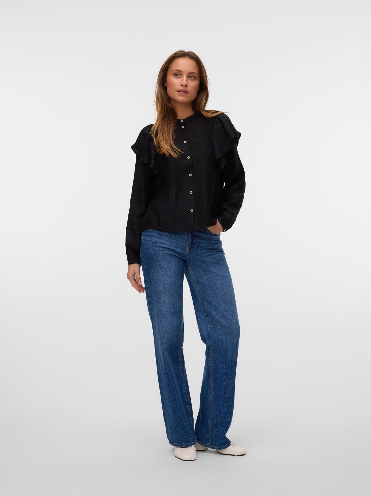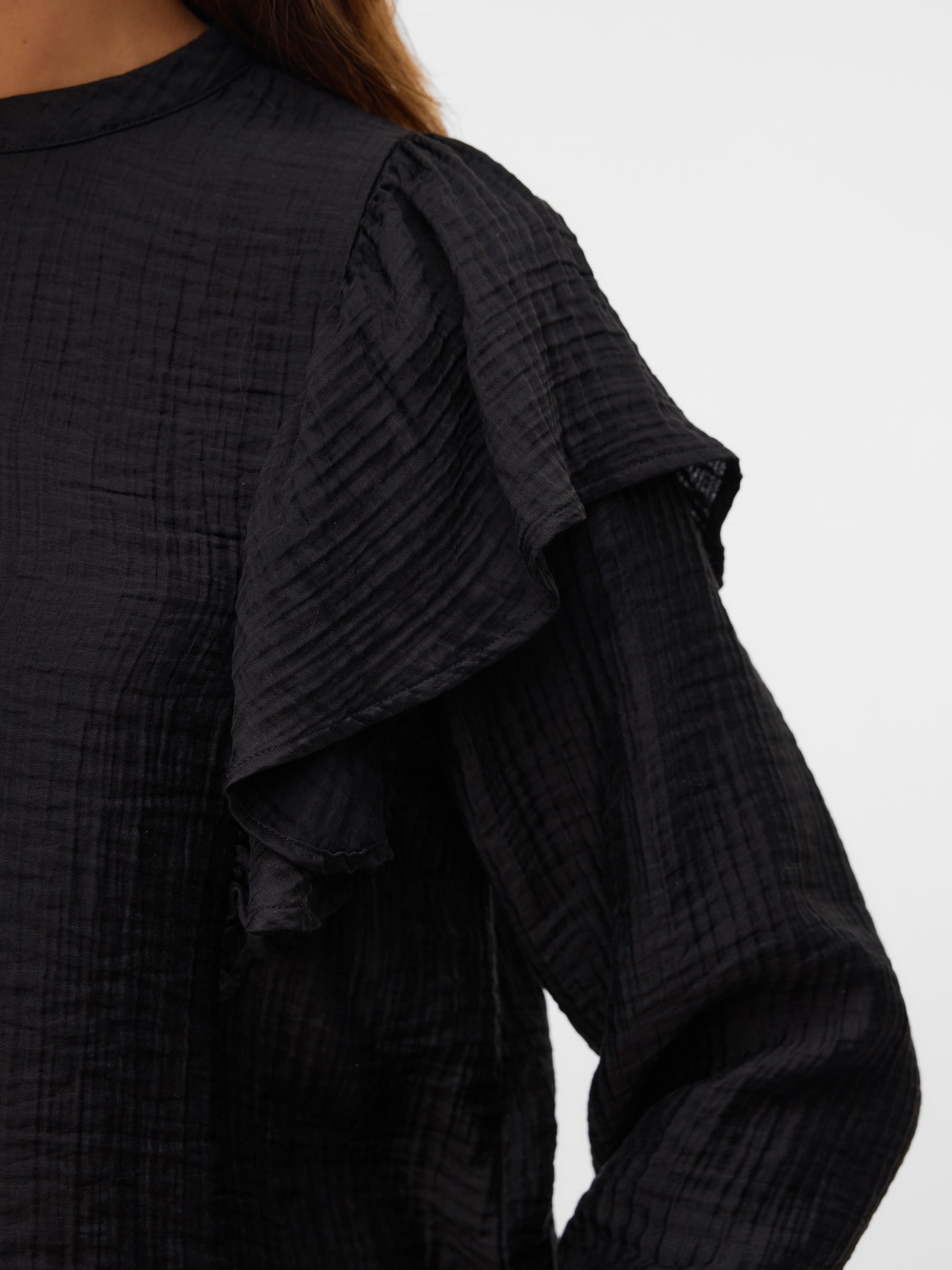 Iščete svoj novi najljubši vsakodnevni top? Imamo idejo. Ta vrhnja majica bo hitro postala vaša nova izbira, ko niste razpoloženi za nekaj divjega, vendar še vedno želite izgledati trendovsko. Dodajte nekaj nakita za dodaten sijaj ali pa ostanite preprosti z lahko jakno. - Vrsta izdelka : Bluza - Vrat : Okrogel izrez - Rokav : Kratki rokavi (K/R) - Rokavi : Voluminozni rokavi - Zaključevanje : Zapenjanje na gumb - Dolžina/Velikost : Ta izdelek ustreza velikosti - Dodatne podrobnosti : Volančki - Prileganje : Običajno prileganje - Lifestyle : Formalno